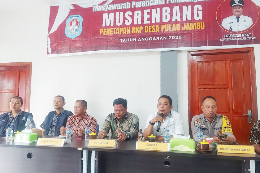 Kepala Seksi Perekonomian dan Pembangunan Bapak Hendry Purwanto, S.E didampingi staf Kecamatan Sungai Raya menghadiri kegiatan dalam rangka Musyawarah Perencanaan Pembangunan Desa (Musrenbangdes) Desa Pulau Jambu Kecamatan Sungai Raya pada hari Sabtu, 13 September 2025 di Aula Kantor Desa Pulau Jambu.