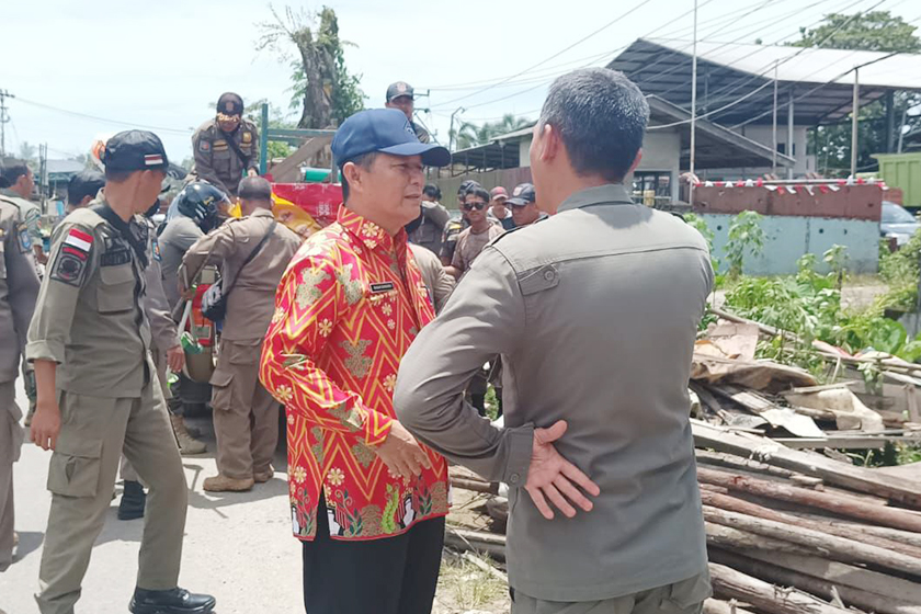 Penertiban kedua lapak kios Pedagang Kaki Lima (PKL) serta bangunan huni di Desa Teluk Kapuas Kecamatan Sungai Raya (di dekat PT. New Kalbar Processors) pada hari Kamis, 18 September 2025.