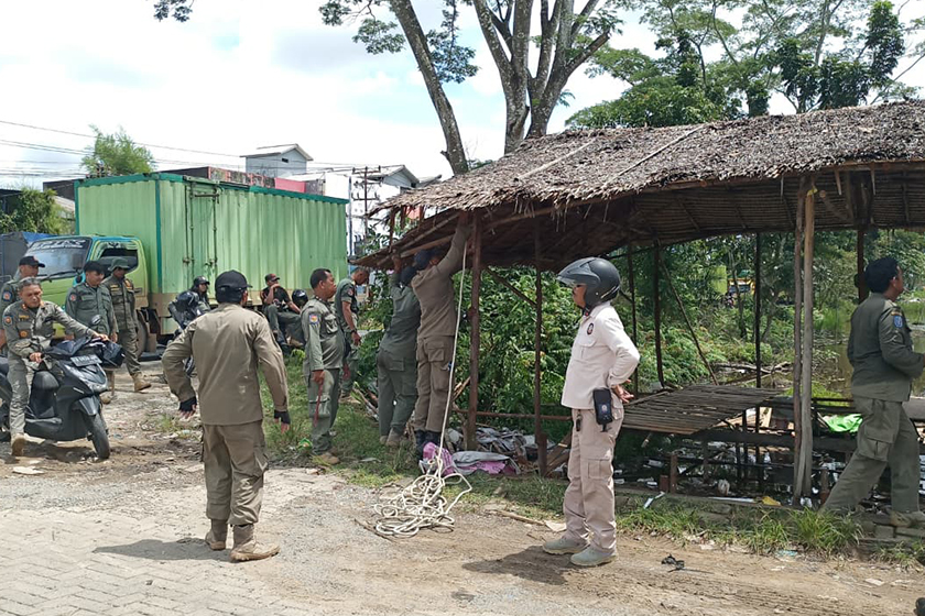 Turut hadir Satuan Polisi Pamong Praja Kabupaten Kubu Raya dalam melakukan penertiban ini. Penertiban dilakukan berdasarkan Peraturan Daerah Kabupaten Kubu Raya Nomor 17 Tahun 2023 tentang Penyelenggaraan Ketentraman, Ketertiban Umum dan Perlindungan Mas . . .