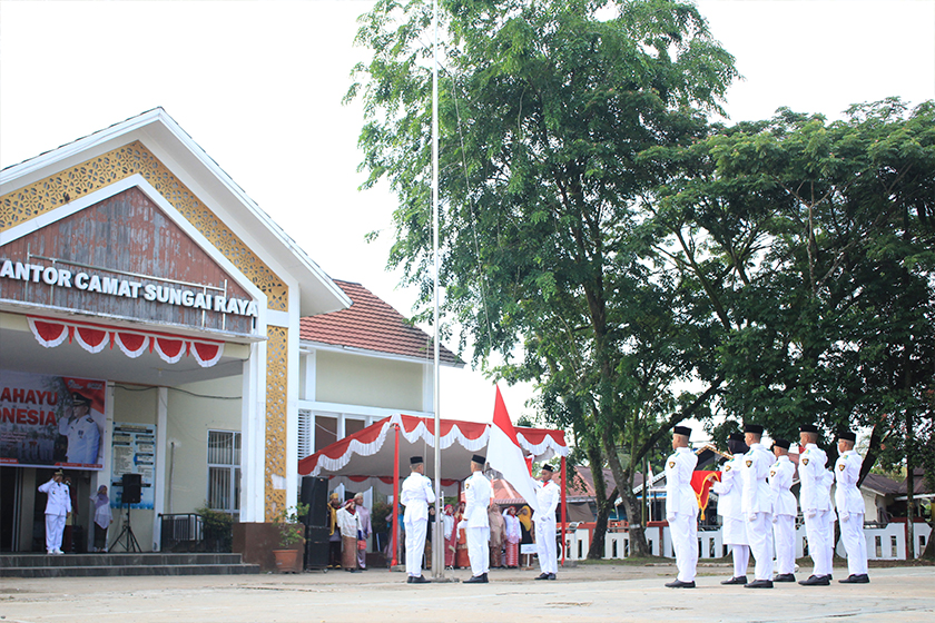 Camat Sungai Raya Bapak Drs. M. Ikhsan Sukendra, M.Si bertindak sebagai Inspektur Upacara, dihadiri juga oleh Kapolsek Sungai Raya, Danramil Sungai Raya, Ketua TP PKK Kecamatan Sungai Raya, Kepala Desa se-Kecamatan Sungai Raya dan tamu undangan lainnya.