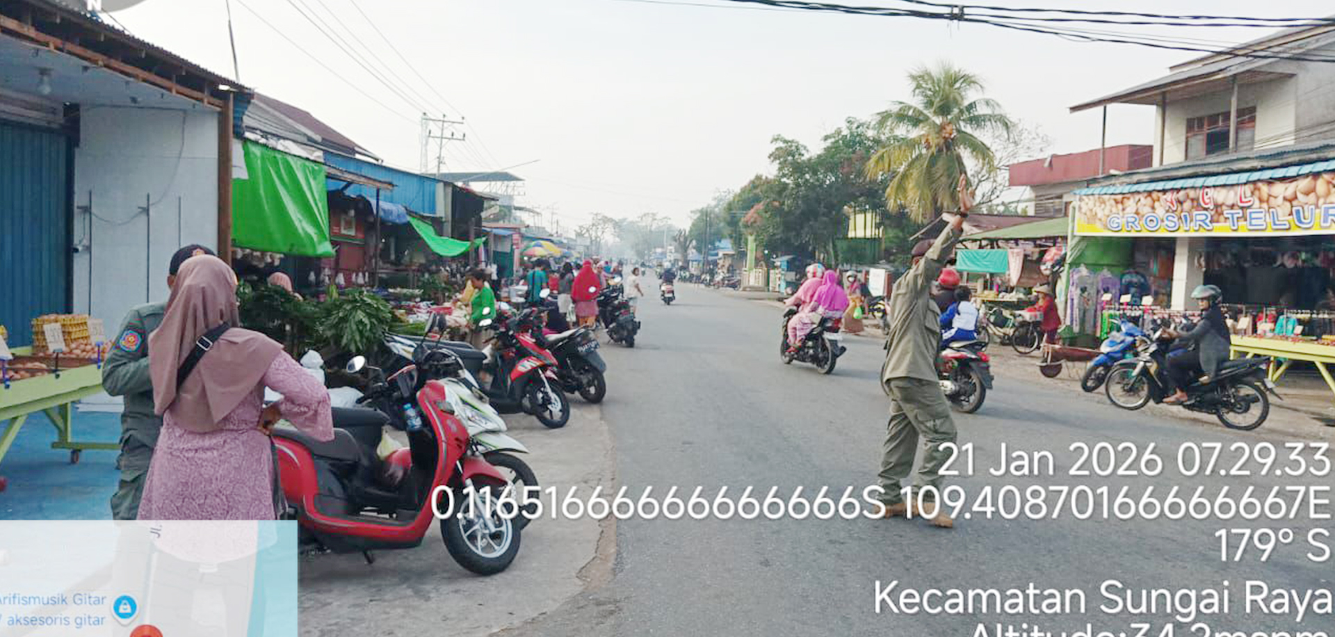 Satuan Polisi Pamong Praja Kecamatan Sungai Raya terus memonitoring Pasar Wonodadi Desa Arang Limbung Kecamatan Sungai Raya, dilaksanakan pada hari . . .